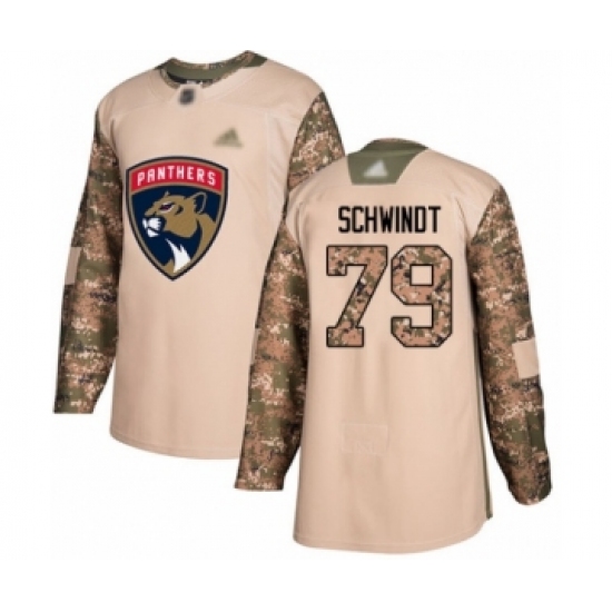 >Men's Florida Panthers #79 Cole Schwindt Authentic Camo Veterans Day Practice Hockey Jersey