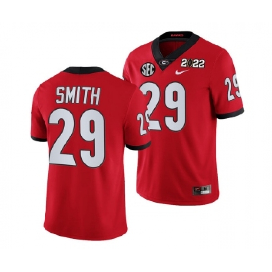 >Men’s Georgia Bulldogs #29 Christopher Smith 2022 Patch Red College Football Stitched Jersey