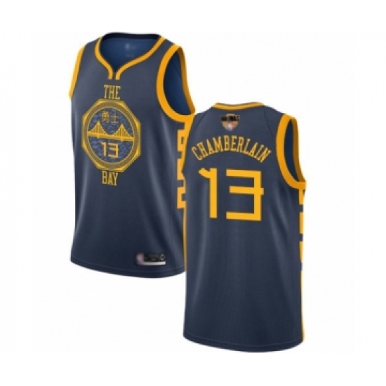 >Men's Golden State Warriors #13 Wilt Chamberlain Swingman Navy Blue Basketball 2019 Basketball Finals Bound Jersey - City Edition