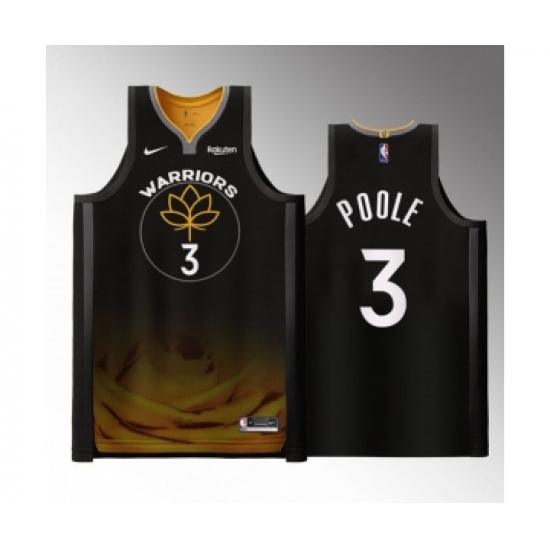 >Men's Golden State Warriors #3 Jordan Poole Black 2022-23 City edition Stitched Basketball Jersey