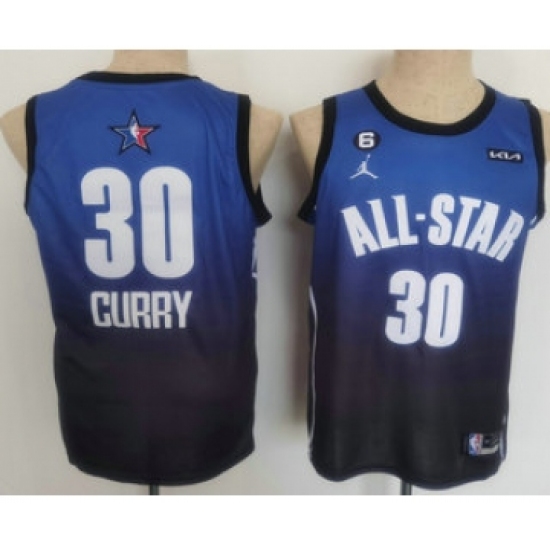 Men's Golden State Warriors 30 Stephen Curry Navy Blue 2022 All Star 6 Patchs Icon Sponsor Swingman Jersey
