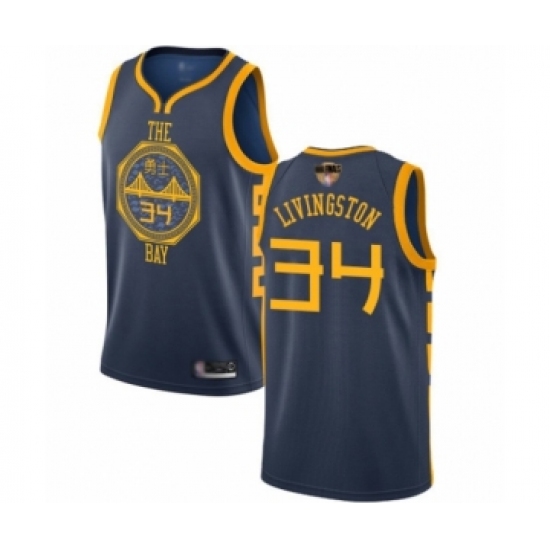 >Men's Golden State Warriors #34 Shaun Livingston Swingman Navy Blue Basketball 2019 Basketball Finals Bound Jersey - City Edition