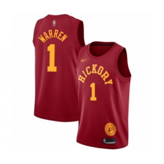Men's Indiana Pacers #1 T.J. Warren Authentic Red Hardwood Classics Basketball Jersey