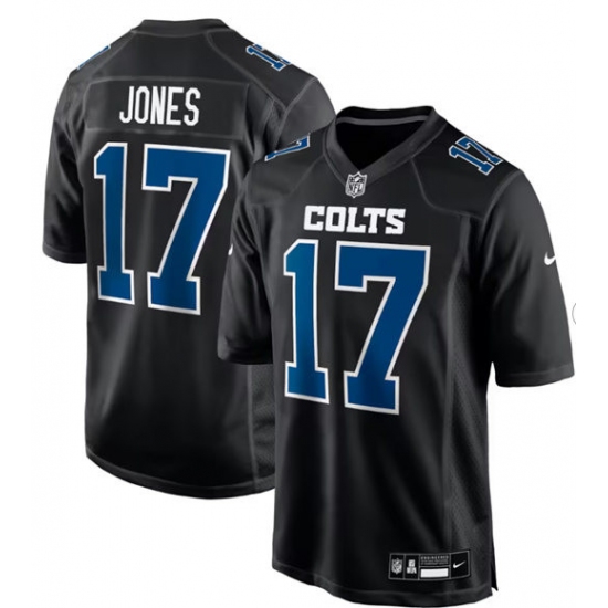 >Men's Indianapolis Colts #17 Daniel Jones Black Stitched Game Jersey