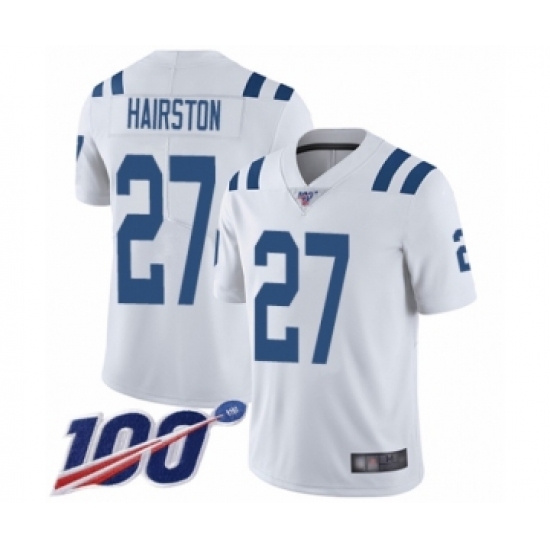 >Men's Indianapolis Colts #27 Nate Hairston White Vapor Untouchable Limited Player 100th Season Football Jersey