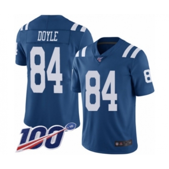 >Men's Indianapolis Colts #84 Jack Doyle Limited Royal Blue Rush Vapor Untouchable 100th Season Football Jersey
