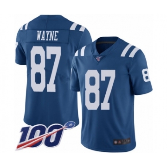>Men's Indianapolis Colts #87 Reggie Wayne Limited Royal Blue Rush Vapor Untouchable 100th Season Football Jersey