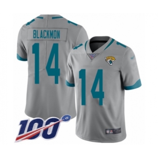 Men's Jacksonville Jaguars #14 Justin Blackmon Silver Inverted Legend Limited 100th Season Football Jersey