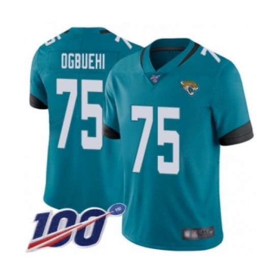 >Men's Jacksonville Jaguars #75 Cedric Ogbuehi Teal Green Alternate Vapor Untouchable Limited Player 100th Season Football Jersey