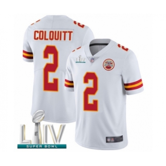 Men's Kansas City Chiefs #2 Dustin Colquitt White Vapor Untouchable Limited Player Super Bowl LIV Bound Football Jersey