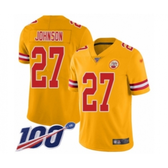 >Men's Kansas City Chiefs #27 Larry Johnson Limited Gold Inverted Legend 100th Season Football Jersey