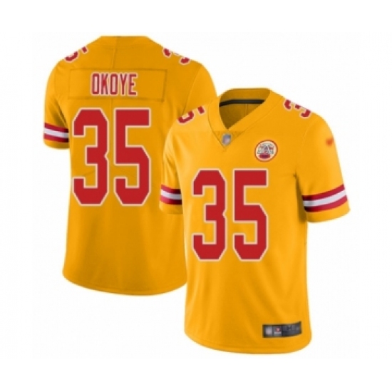 Men's Kansas City Chiefs #35 Christian Okoye Limited Gold Inverted Legend Football Jersey