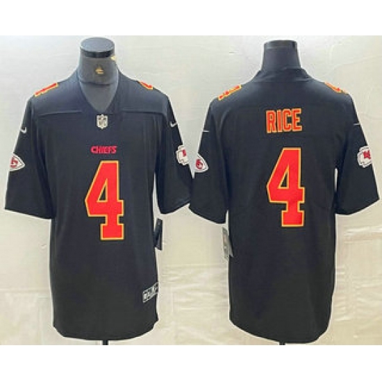 >Men's Kansas City Chiefs #4 Rashee Rice Black Fashion Vapor Limited Stitched Jersey