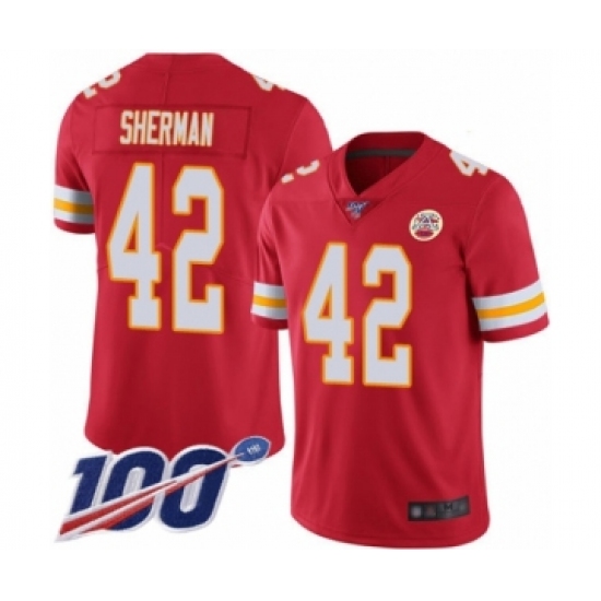 >Men's Kansas City Chiefs #42 Anthony Sherman Red Team Color Vapor Untouchable Limited Player 100th Season Football Jersey