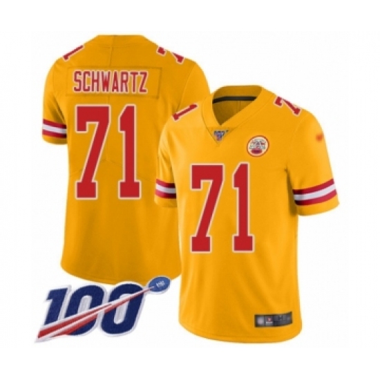 >Men's Kansas City Chiefs #71 Mitchell Schwartz Limited Gold Inverted Legend 100th Season Football Jersey