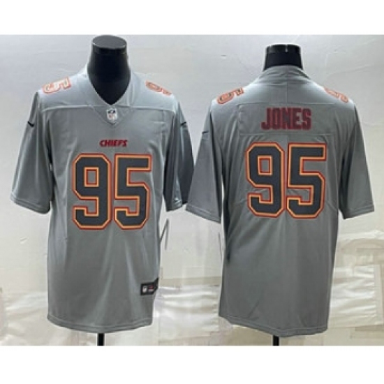 Men's Kansas City Chiefs #95 Chris Jones Gray Atmosphere Fashion Stitched Jersey