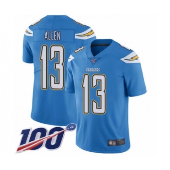 >Men's Los Angeles Chargers #13 Keenan Allen Electric Blue Alternate Vapor Untouchable Limited Player 100th Season Football Jersey
