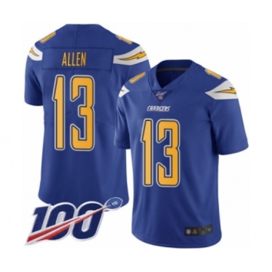 >Men's Los Angeles Chargers #13 Keenan Allen Limited Electric Blue Rush Vapor Untouchable 100th Season Football Jersey