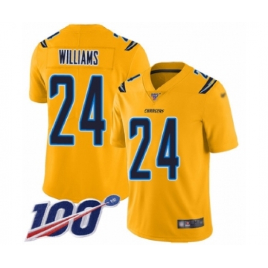 >Men's Los Angeles Chargers #24 Trevor Williams Limited Gold Inverted Legend 100th Season Football Jersey
