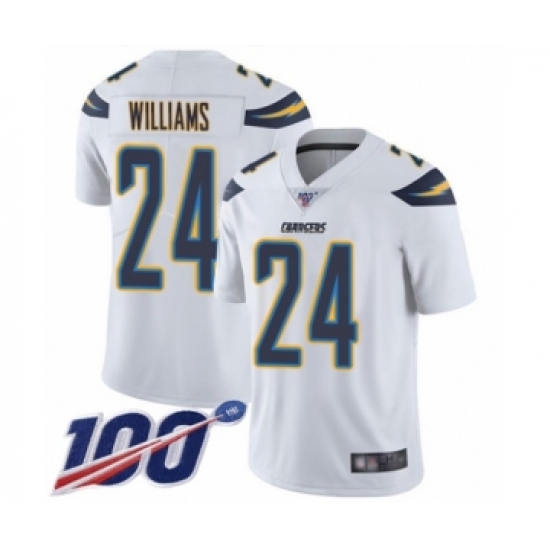 Men's Los Angeles Chargers #24 Trevor Williams White Vapor Untouchable Limited Player 100th Season Football Jersey