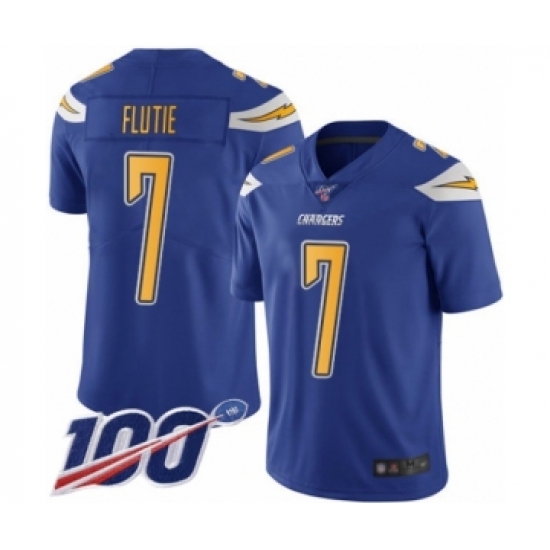 Men's Los Angeles Chargers #7 Doug Flutie Limited Electric Blue Rush Vapor Untouchable 100th Season Football Jersey