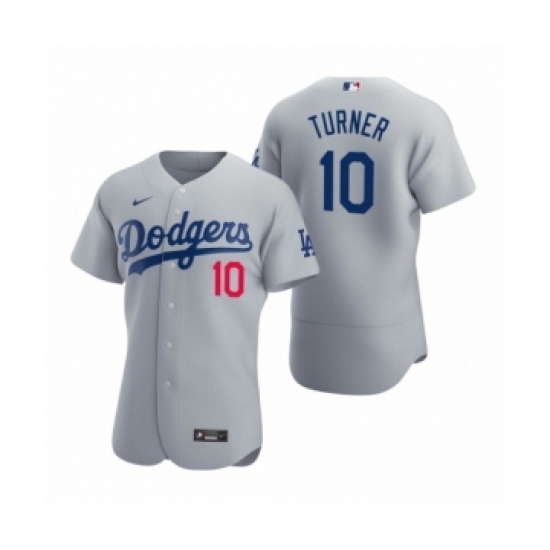 Men's Los Angeles Dodgers #10 Justin Turner Nike Gray Authentic 2020 Alternate Jersey