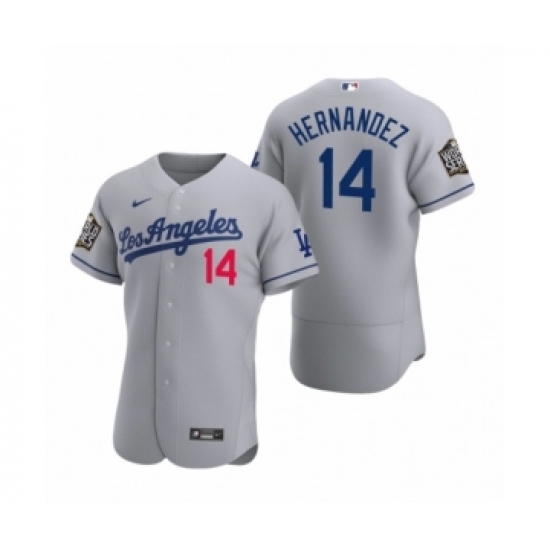 >Men's Los Angeles Dodgers #14 Enrique Hernandez Nike Gray 2020 World Series Authentic Road Jersey