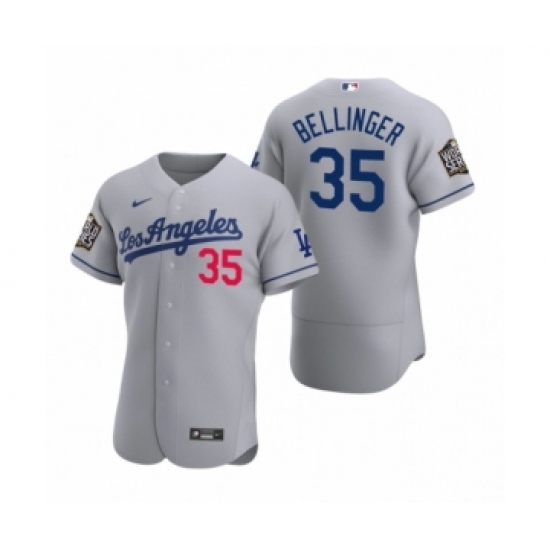 Men's Los Angeles Dodgers #35 Cody Bellinger Nike Gray 2020 World Series Authentic Road Jersey