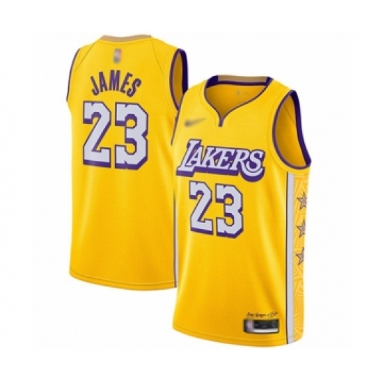 Men's Los Angeles Lakers #23 LeBron James Swingman Gold 2019-20 City Edition Basketball Jersey
