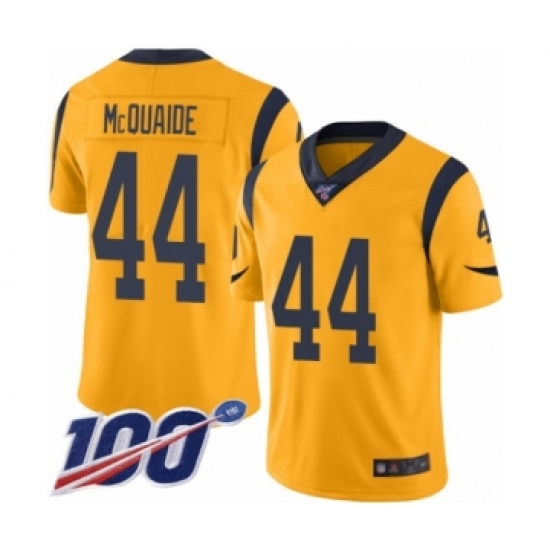 >Men's Los Angeles Rams #44 Jacob McQuaide Limited Gold Rush Vapor Untouchable 100th Season Football Jersey