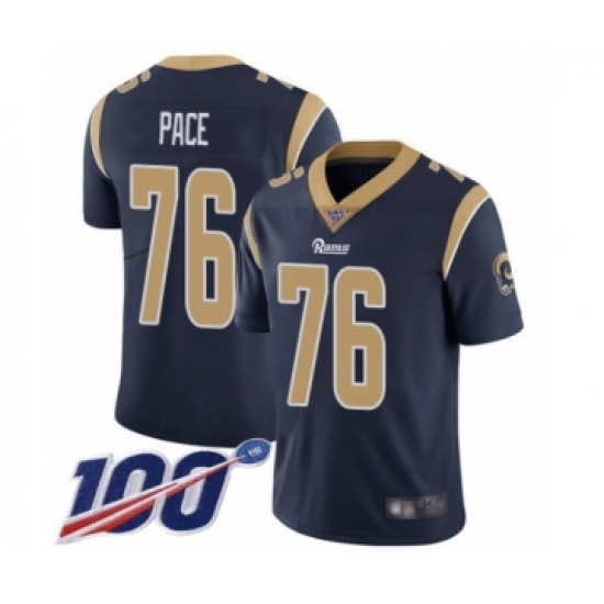 Men's Los Angeles Rams #76 Orlando Pace Navy Blue Team Color Vapor Untouchable Limited Player 100th Season Football Jersey
