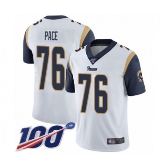 Men's Los Angeles Rams #76 Orlando Pace White Vapor Untouchable Limited Player 100th Season Football Jersey