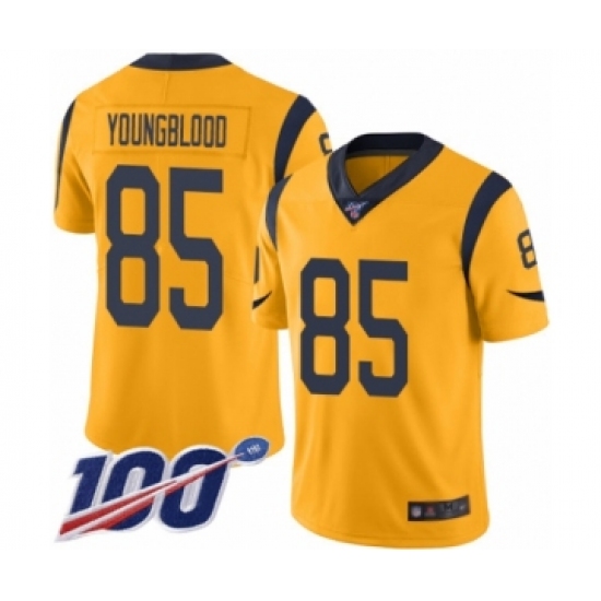 >Men's Los Angeles Rams #85 Jack Youngblood Limited Gold Rush Vapor Untouchable 100th Season Football Jersey