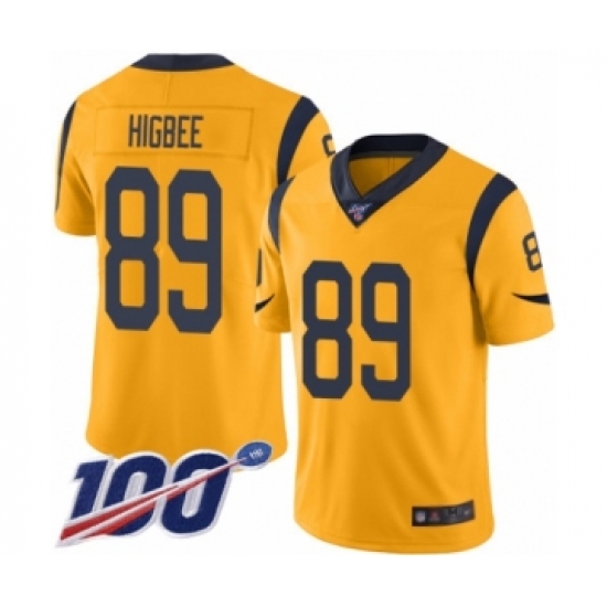 >Men's Los Angeles Rams #89 Tyler Higbee Limited Gold Rush Vapor Untouchable 100th Season Football Jersey