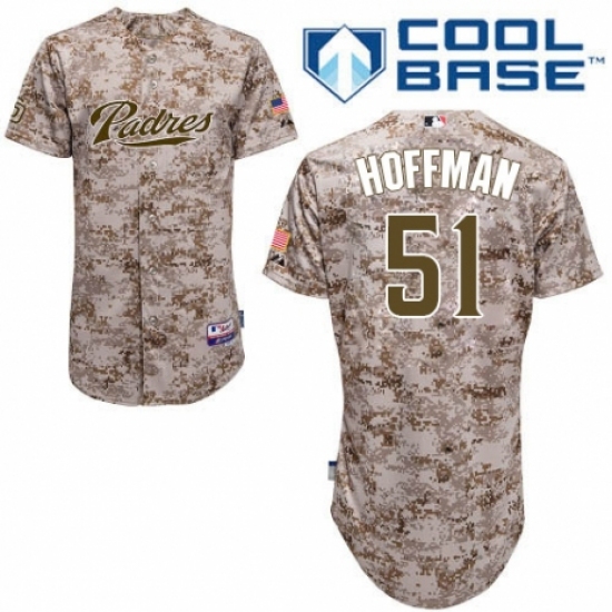 >Men's Majestic San Diego Padres #51 Trevor Hoffman Replica Camo Alternate 2 Cool Base MLB Jersey