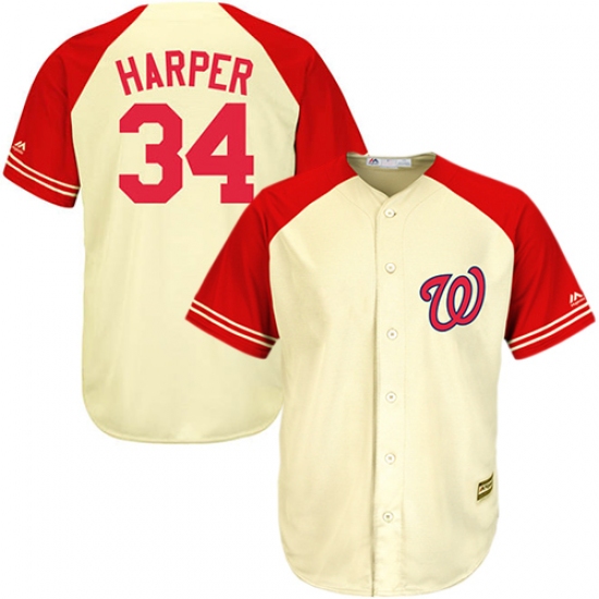 Men's Majestic Washington Nationals #34 Bryce Harper Authentic Cream/Red Exclusive MLB Jersey