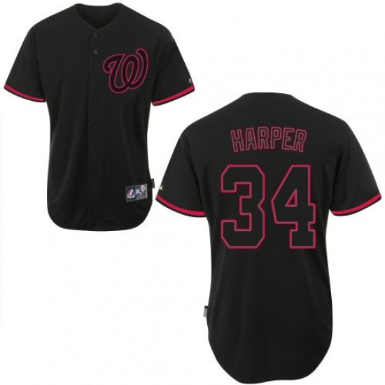 Home>MLB>Washington Nationals>Bryce Harper>Men's Majestic Washington Nationals #34 Bryce Harper Replica Black Fashion MLB Jersey