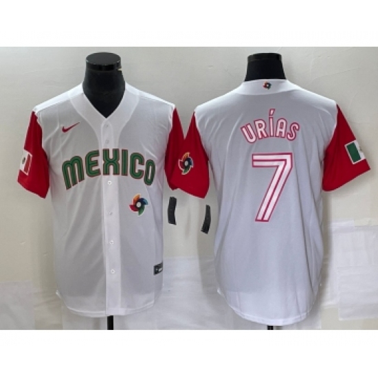 Men's Mexico Baseball #7 Julio Urias Number 2023 White Red World Classic Stitched Jersey 47