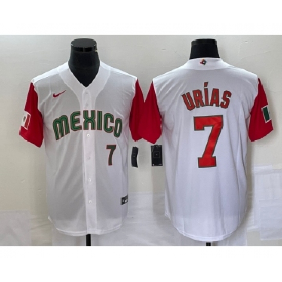 Men's Mexico Baseball #7 Julio Urias Number 2023 White Red World Classic Stitched Jersey21