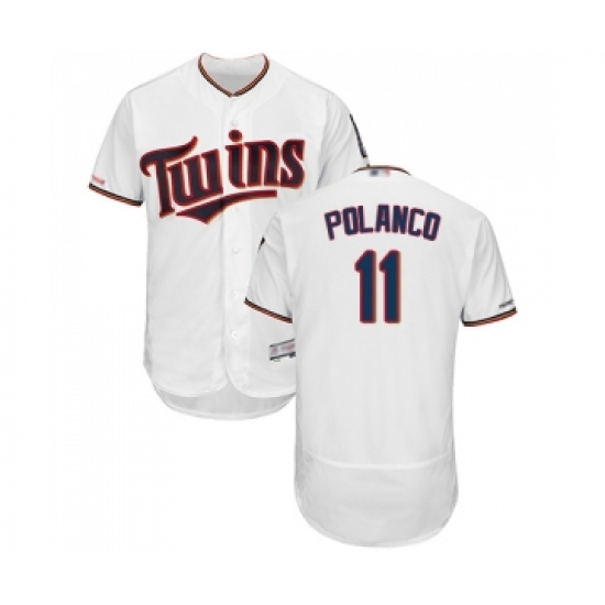 Men's Minnesota Twins #11 Jorge Polanco White Home Flex Base Authentic Collection Baseball Jersey