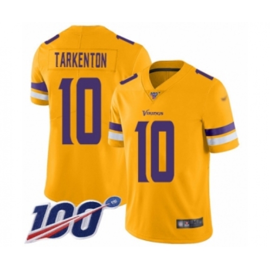 >Men's Minnesota Vikings #10 Fran Tarkenton Limited Gold Inverted Legend 100th Season Football Jersey