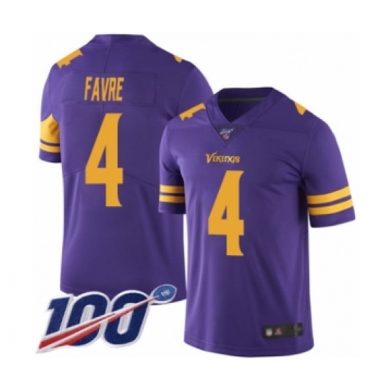 Men's Minnesota Vikings #4 Brett Favre Limited Purple Rush Vapor Untouchable 100th Season Football Jersey