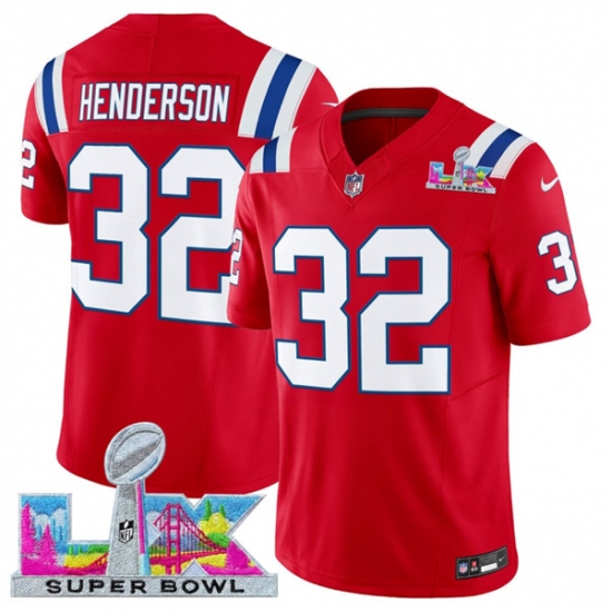 >Men's New England Patriots #32 TreVeyon Henderson Red 2025 F.U.S.E. Super Bowl LX Vapor Limited Football Stitched Jersey
