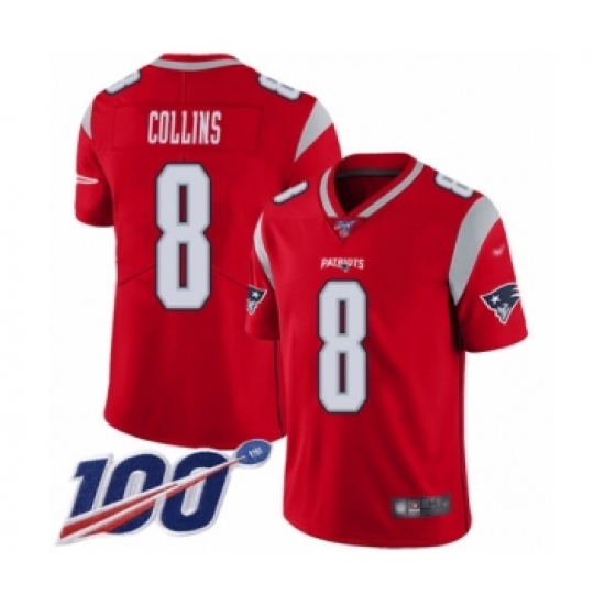 Men's New England Patriots #8 Jamie Collins Limited Red Inverted Legend 100th Season Football Jersey