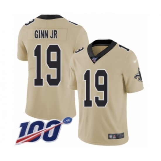 Men's New Orleans Saints #19 Ted Ginn Jr Limited Gold Inverted Legend 100th Season Football Jersey
