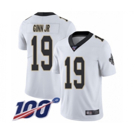 Men's New Orleans Saints #19 Ted Ginn Jr White Vapor Untouchable Limited Player 100th Season Football Jersey