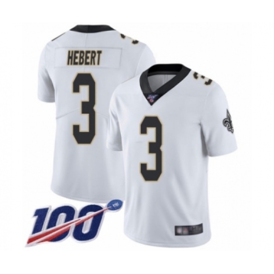 Men's New Orleans Saints #3 Bobby Hebert White Vapor Untouchable Limited Player 100th Season Football Jersey