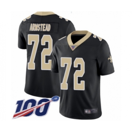 >Men's New Orleans Saints #72 Terron Armstead Black Team Color Vapor Untouchable Limited Player 100th Season Football Jersey