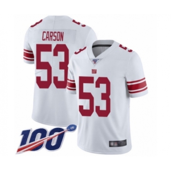 >Men's New York Giants #53 Harry Carson White Vapor Untouchable Limited Player 100th Season Football Jersey