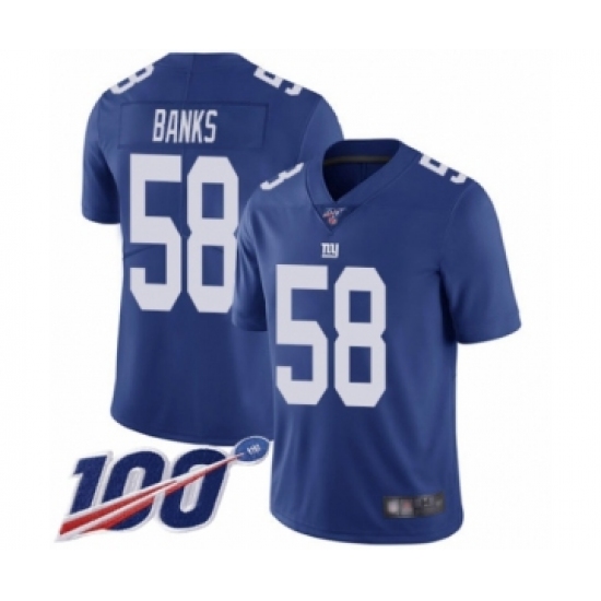 >Men's New York Giants #58 Carl Banks Royal Blue Team Color Vapor Untouchable Limited Player 100th Season Football Jersey